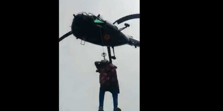 The Indian Navy and Army have been working tirelessly to decrease the toll on human life caused due to floods in Kerala. Airborne units of the Navy have been using helicopters to evacuate people from dangerous areas while boat units have reached places to do mass evacuations of people. Several dozen helicopters and boats are being operated round the clock to provide relief to residents of Kerala where the rising waters are wreaking havoc. A video of one especially intense rescue operation was shared by Indian Navy’s official Twitter handle on Friday. The video shows a pregnant lady being airlifted by the rescue team using a Navy helicopter after her water broke.