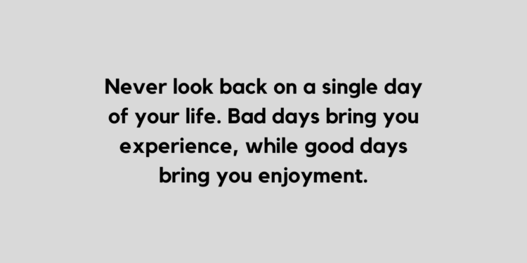 Never look back on a single day of your life. Bad days bring you experience, while good days bring you enjoyment.