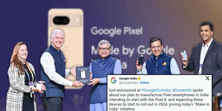 Just announced at #GoogleForIndia: @rosterloh spoke about our plan to manufacture Pixel smartphones in India intending to start with the Pixel 8, and expecting these devices to start to roll out in 2024, joining India’s “Make in India” initiative.