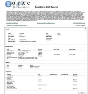 These details, however, matched word-for-word with the US sanctions database. Hafiz Abdur Rauf, identified as a senior LeT leader since 1999 and head of its charitable front Falah-i-Insaniat Foundation, has been sanctioned by the US Office of Foreign Assets Control (OFAC). His multiple addresses in Lahore, Pakistani passports, and National ID are all publicly listed and match the Pakistani Army’s description.