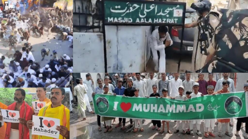 Later, reports of similar disputes began emerging from other parts of Uttar Pradesh. In Bareilly, police stopped a group from hoisting a large “I Love Muhammad” hoarding near Dargah Ala Hazrat, fearing congestion during Friday prayers. In Sambhal, wall graffiti with the slogan was painted over by municipal workers, triggering late-night demonstrations in Sarai Tareen. Youths gathered outside the police station demanding action against those who erased it.