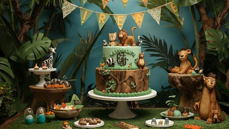 These cakes tell a story. Parents pair them with safari decorations, and suddenly the whole party has this cohesive look that photographs like a magazine spread. Bakers are getting incredibly creative too. Some create multi-tiered cakes where each level represents a different part of the jungle. Others go for a single sculptural piece that becomes the room’s centerpiece.